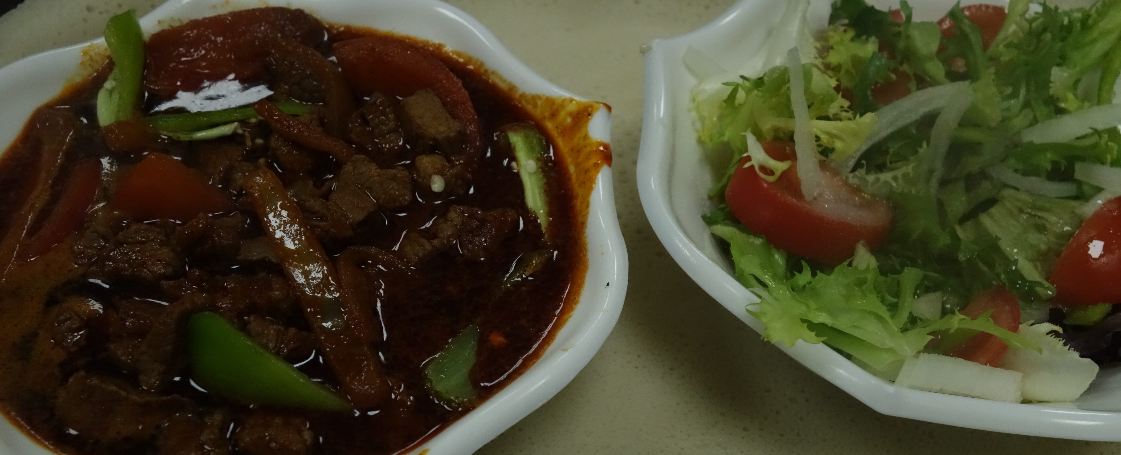 Small tender lamb cubes fried with onion, rosemary, green chilies, and a mixture of Ethiopian spices, served with a salad on the side.